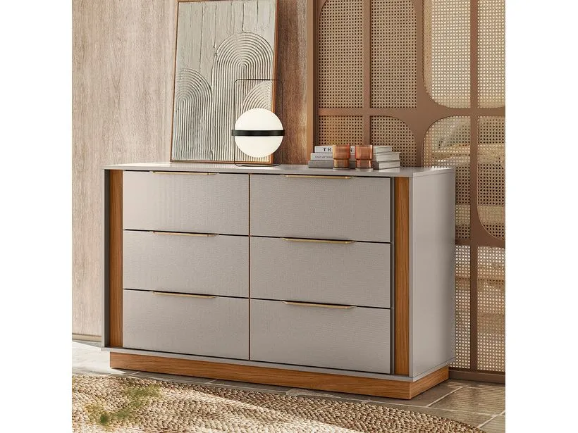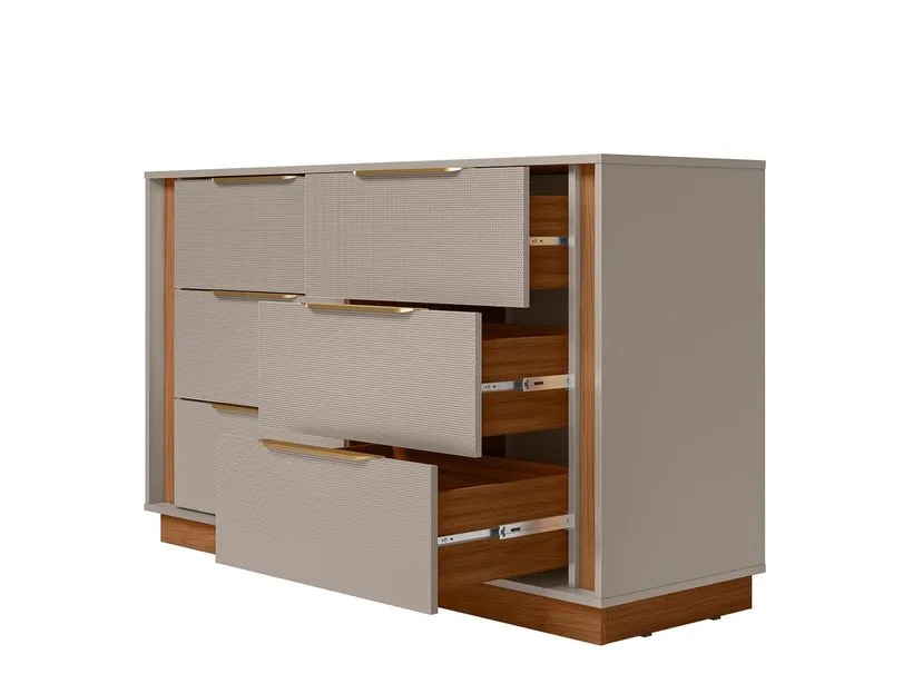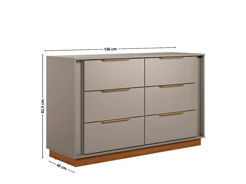 A cômoda Giardino da Demóbile é ideal para organizar o quarto, deixando tudo mais prático e acessível. É uma ótima opção para quem busca um móvel bonito, funcional e de qualidade. Ela é produzida em MDP, um material resistente e durável, e possui acabamento em pintura UV, que garante uma superfície lisa e uniforme, além de proteger o móvel contra riscos e manchas. O seu design contemporâneo é ideal para qualquer ambiente, e ela conta com 6 gavetas com corrediças telescópicas, que proporcionam uma abertura total e um deslizamento suave. Os puxadores são em plástico ABS, um material resistente e de fácil limpeza, e os pés são mini sapatas, que evitam o atrito do móvel com o piso. É a escolha ideal para quem busca um móvel prático, funcional e bonito.