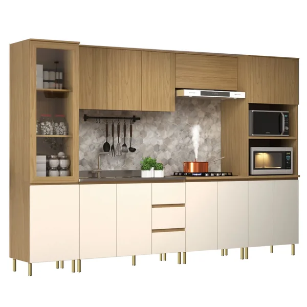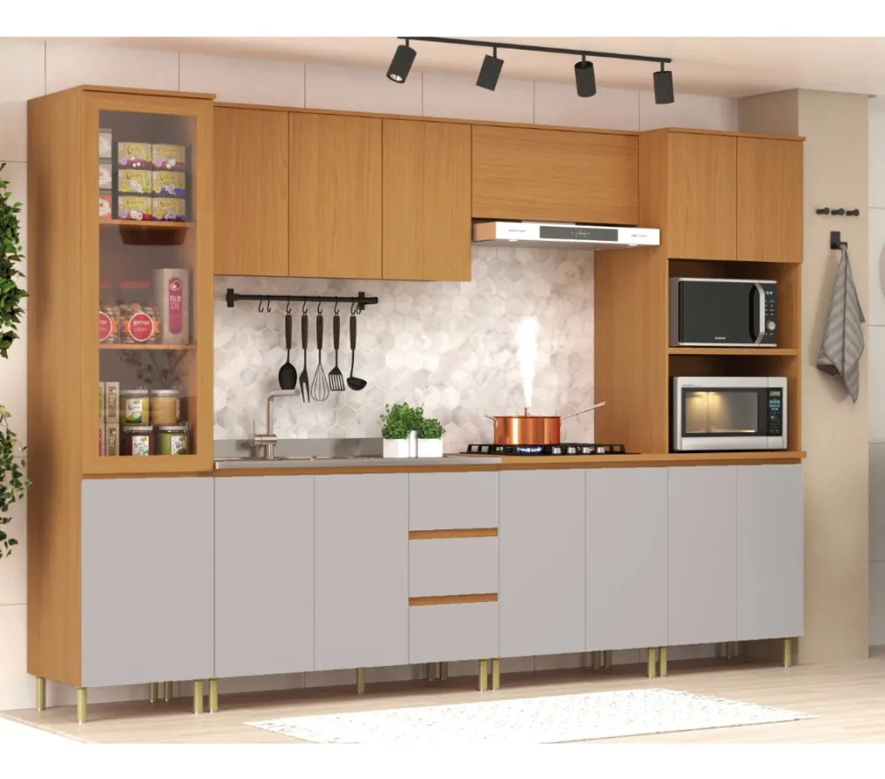 A cozinha Modulada Florença 6 peças , tem um design moderno . É composta por Paneleiro com 1 porta de vidro , Aereo 120cm com 3 portas , Aereo 80cm com 2 portas, Balcao de 80cm ideal para acoplar coktoop de 4 e ou 5 bocas parte interna possui uma prateleira com espaço amplo para armazenamento, Balcao 120cm com 3 gavetas e o Kit Forno/Micro, permitindo composicoes variadas, projetos exclusivos, conforme o espaco do consumidor. A Cozinha Florença é produzida na cor Angelin com Cobalto, possui acabamento em Pintura UV, corrediças telescopicas nas gavetas, puxadores em um angulo de 45 graus na propria peça, deixando o movel muito mais clean e moderno. A cozinha é 100% em MDF. Projetada para proporcionar praticidade e funcionalidade no uso diário.