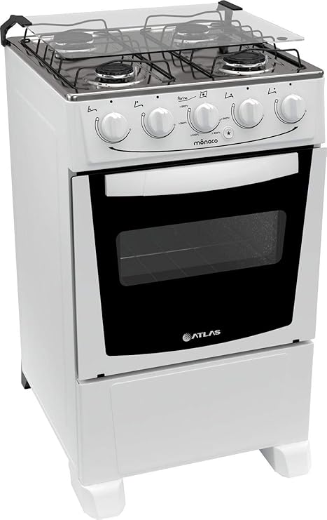 O Fogão Atlas Mônaco Plus é referência em praticidade e eficiência. Possui 4 bocas com acendimento automático, mesa em aço inox sobreposta e forno Limpa Fácil, que não deixa vestígios de gordura. O forno ainda conta com 1 grade deslizante com 2 regulagens de altura. Tudo isso para proporcionar mais agilidade e praticidade ao seu dia a dia. Capacidade do forno de 50 litros com vidro duplo e visor amplo na porta do forno.