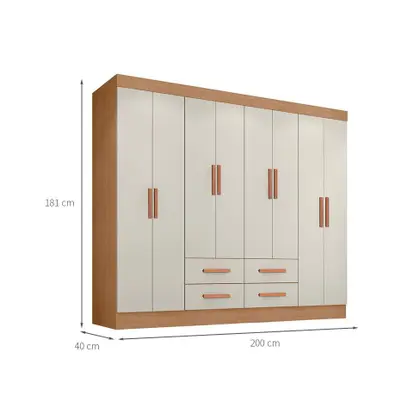Que tal o Guarda-Roupa Lite? Amplo e perfeito para ser dividido por um casal, o Guarda-Roupa Lite é a escolha certa para seu closet ou dormitório dos sonhos. Dispondo de 8 portas e 4 gavetas, a divisão interna conta com nichos e cabideiros distribuídos de maneira simétrica, assim cada um terá o espaço ideal para organizar vestuário, acessórios e até calçados. Por fora, o móvel tem visual atemporal que destaca os puxadores alongados, toque moderno que dá um ar elegante à decoração.