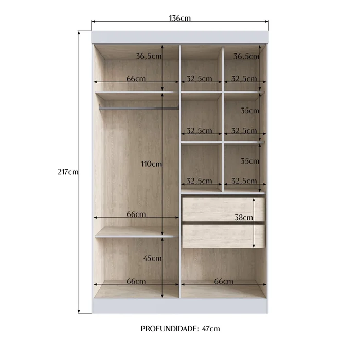 Roupeiro Flórida 6 Portas 2 Gavetas
